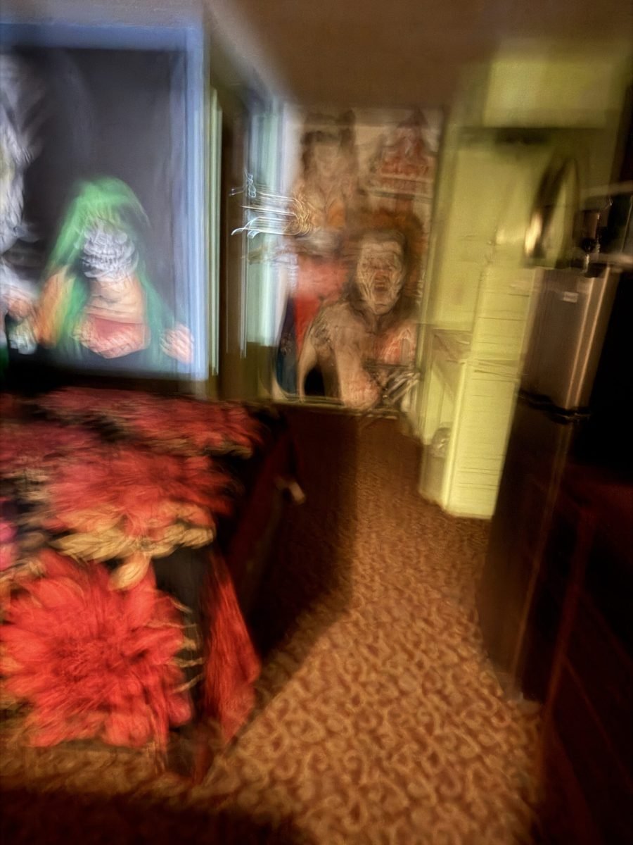Inside a basic room, simple comfort with a very strange twist