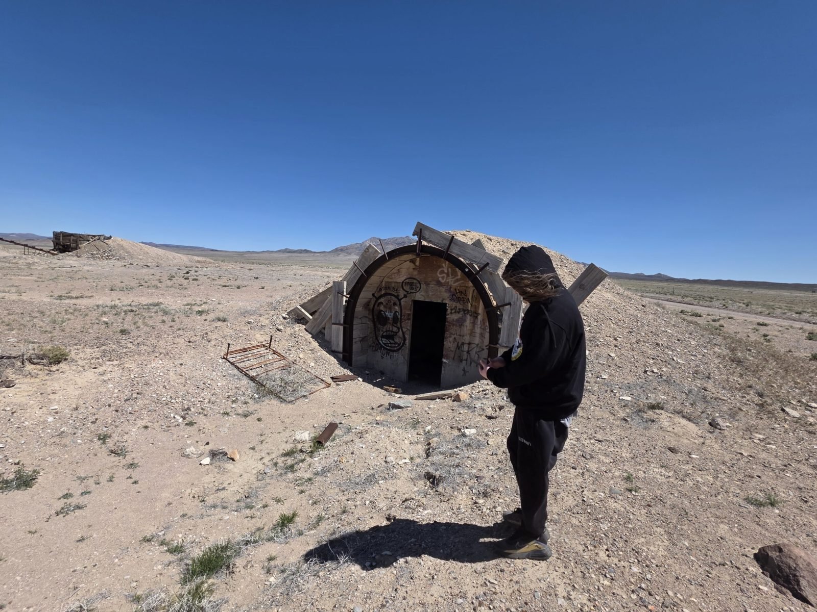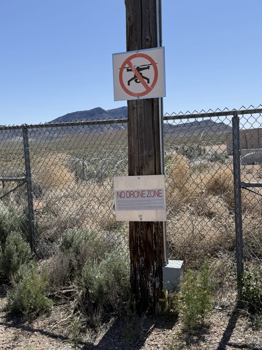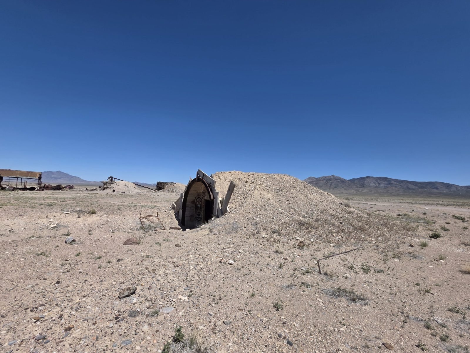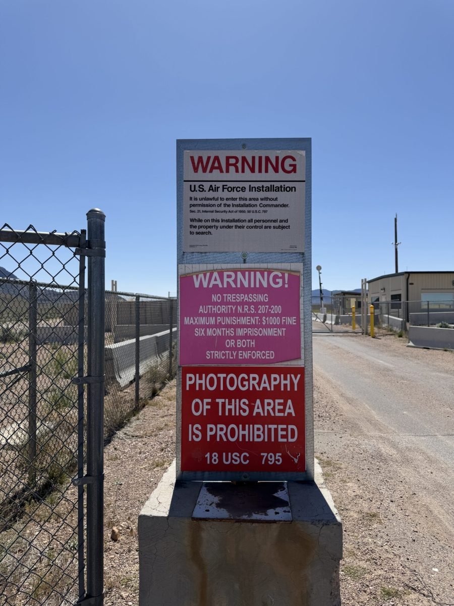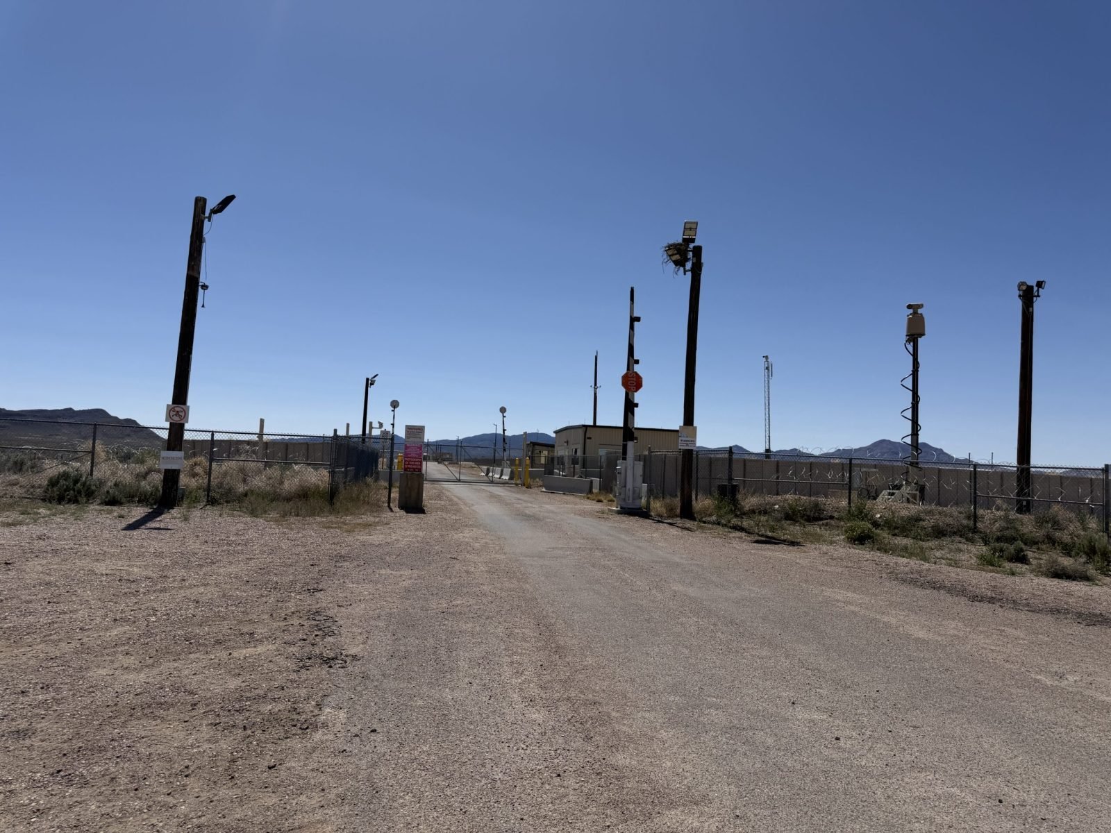 The road to the back gate is remote and dusty. Along the way, the landscape is plain in the best Nevada sense, broad valleys, scrub, and mountain walls in the distance. Then the warning signs appear, and the mood changes fast.