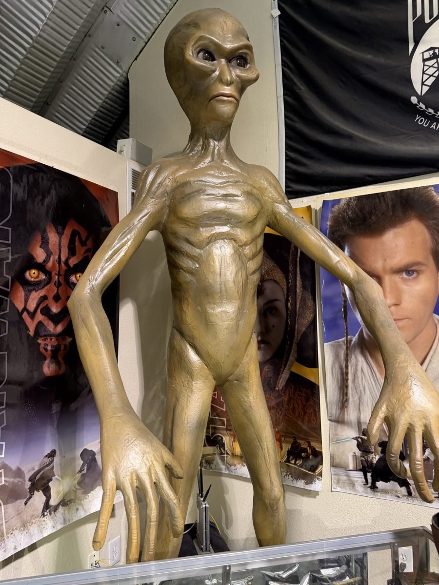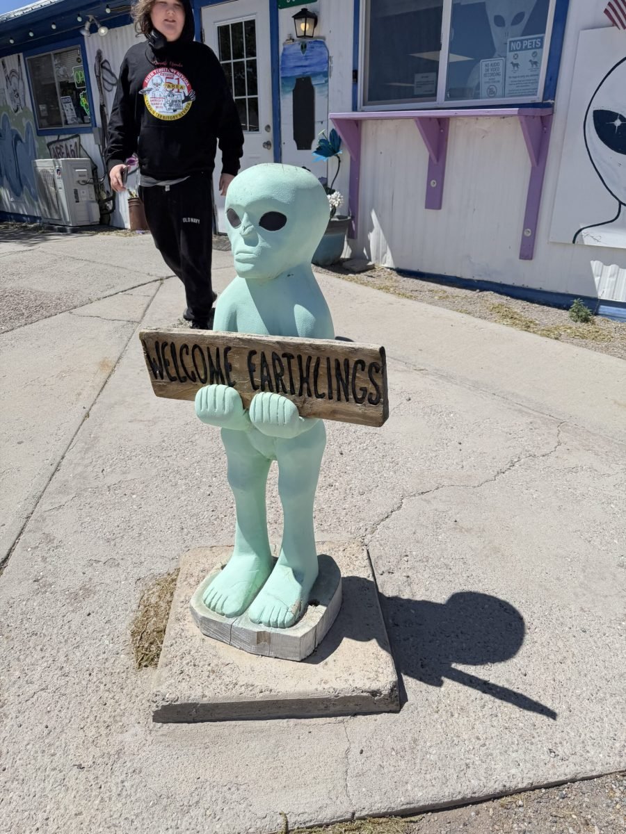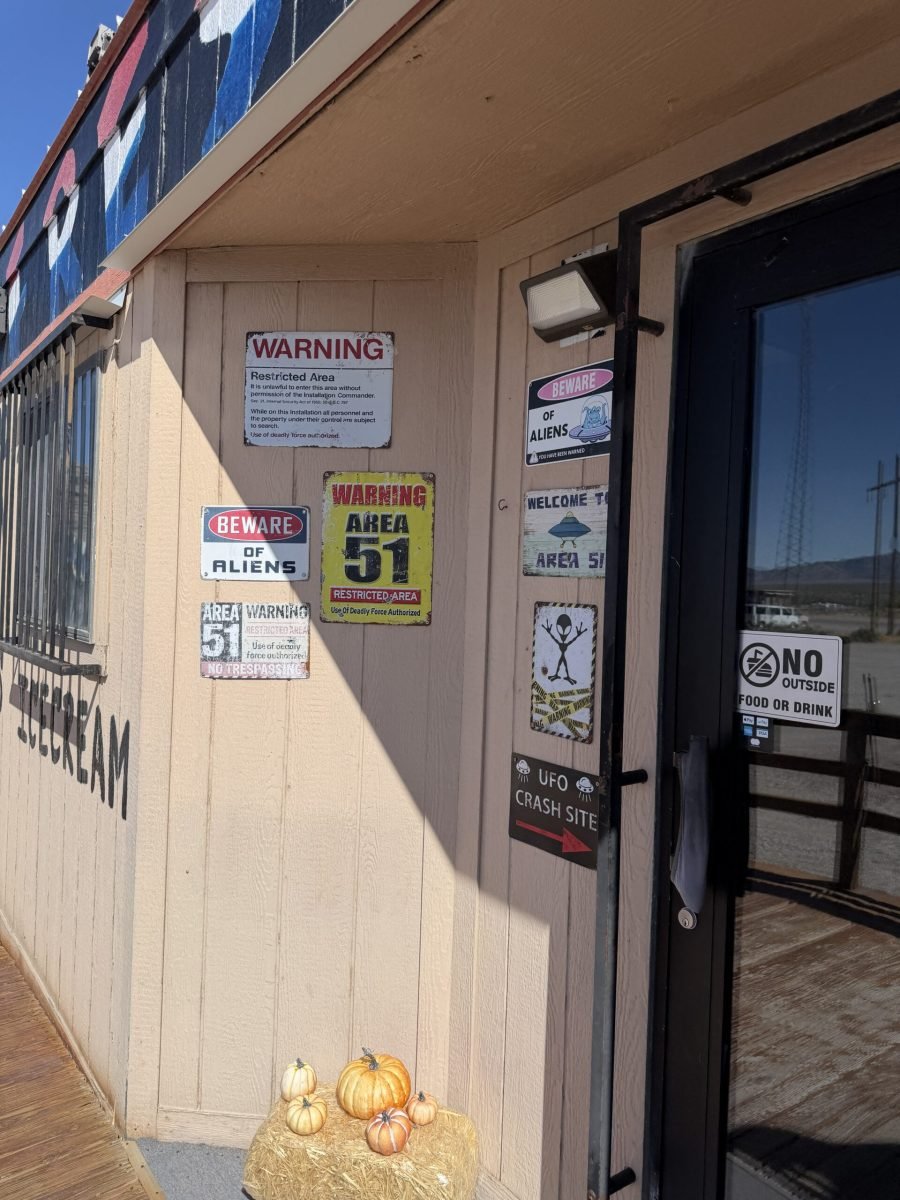 The Alien Research Center, near the southern approach, is another easy stop. Despite the name, it’s a gift shop, not a lab, and that’s part of its charm. A giant alien statue rises beside the building, giving drivers the kind of roadside absurdity that feels perfect here. You can browse shirts, novelty signs, and UFO-themed souvenirs, then step back outside to photograph the desert around it.