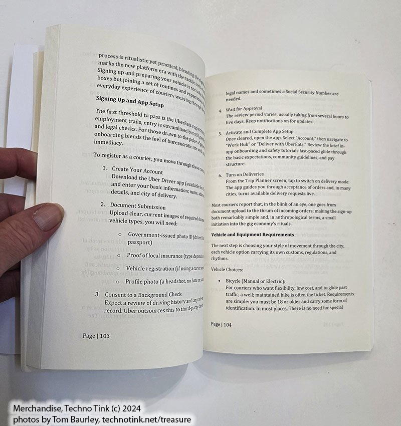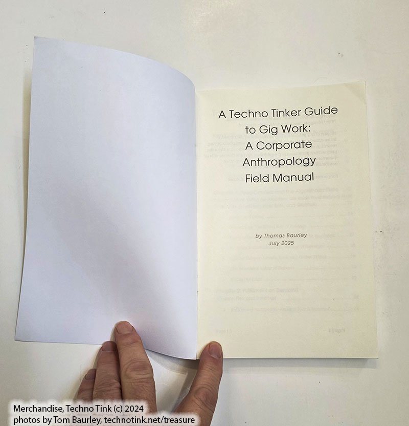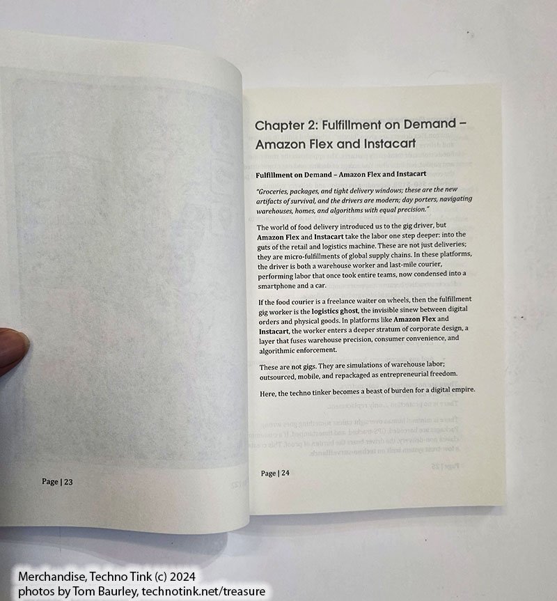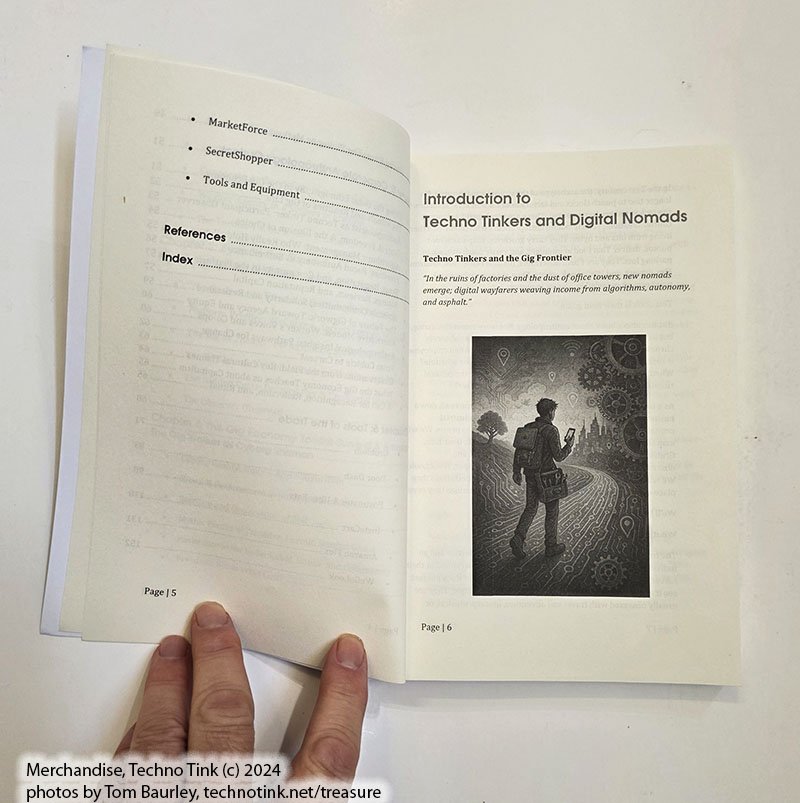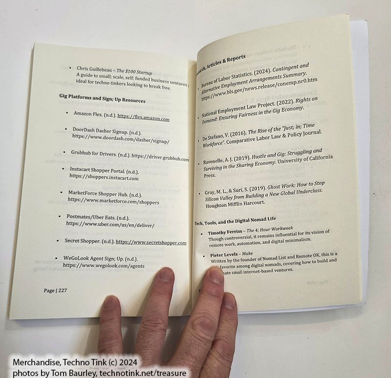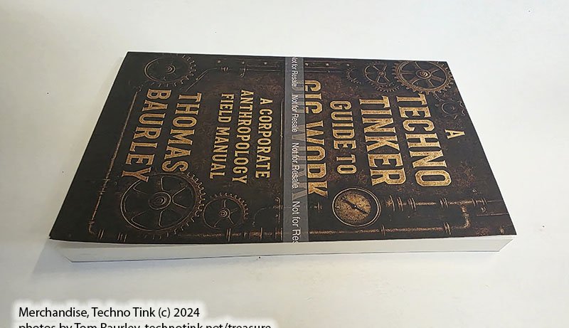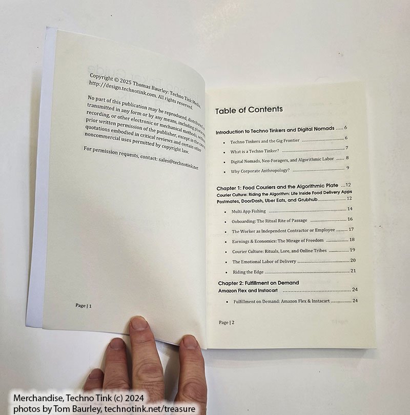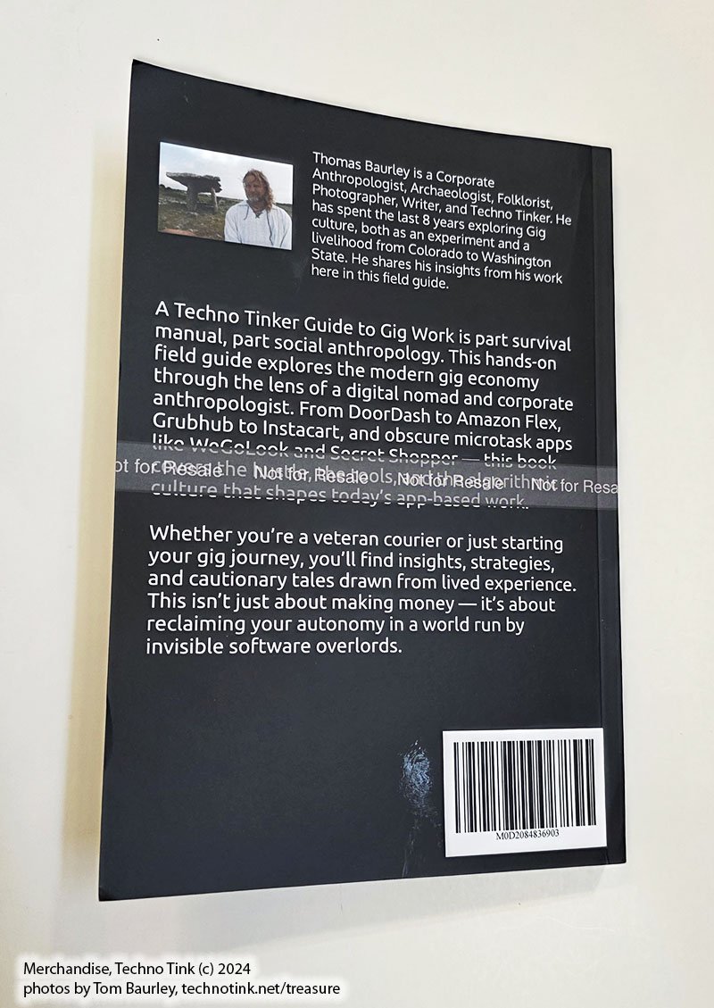 A Techno Tinker Guide to Gig Work: A Corporate Anthropology Field Manual. Hardcover: ISBN: 9798293352036. Paperback. 237 pages. Full color cover/back, interior black and white on off-white pages. 6x.6×9 inches. Publication date: July 20, 2025. Techno Tink Media: Sumas, Washington. ISBN-13: 979-8293352036. A Techno Tinker Guide to Gig Work is part survival manual, part social anthropology. This hands-on field guide explores the modern gig economy through the lens of a digital nomad and corporate anthropologist. From DoorDash to Amazon Flex, Grubhub to Instacart, and obscure microtask apps like WeGoLook and Secret Shopper; this book covers the hustle, the tools, and the algorithmic culture that shapes today’s app-based work. 237 pages. Published by Techno Tink Media, July 2025. Available as interactive e-book PDF, kindle, paperback, or hardcover. Interactive PDF E-Book: https://technotink.net/treasure/?post_type=product&p=12876; Paperback: https://www.amazon.com/dp/B0FJ8T5WYS; Hardcover: https://www.amazon.com/dp/B0FJFP95BV; Kindle: https://www.amazon.com/dp/B0FGT8BRW6.